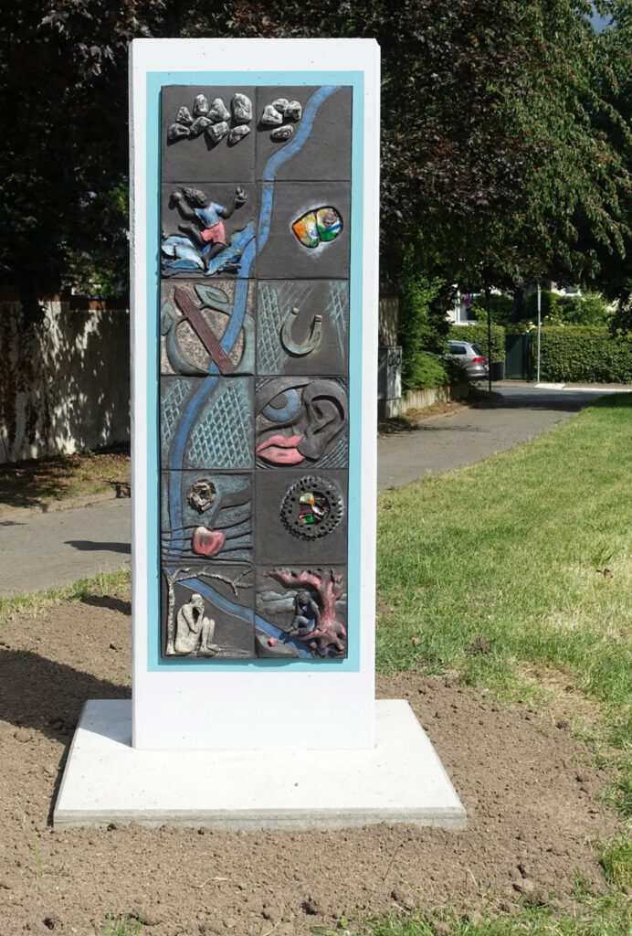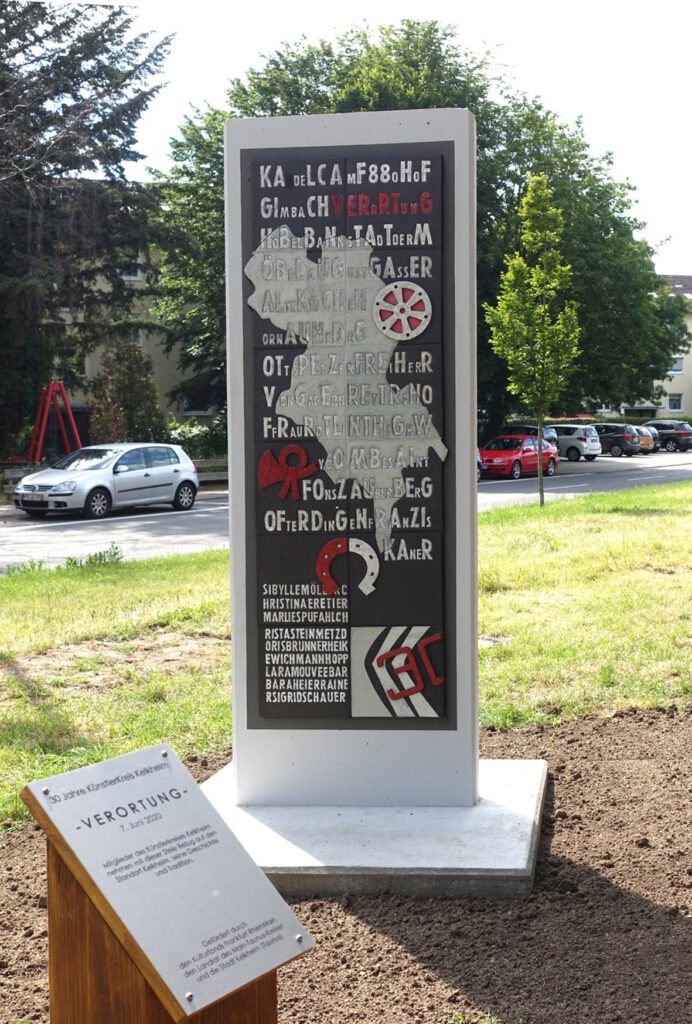 Die Kelkheimer Künstlerinnen wählten Motive ihrer Heimat und nennen die Stele „Verortung“ -eine Assoziation an Verwurzelung mit ihrem Ort.